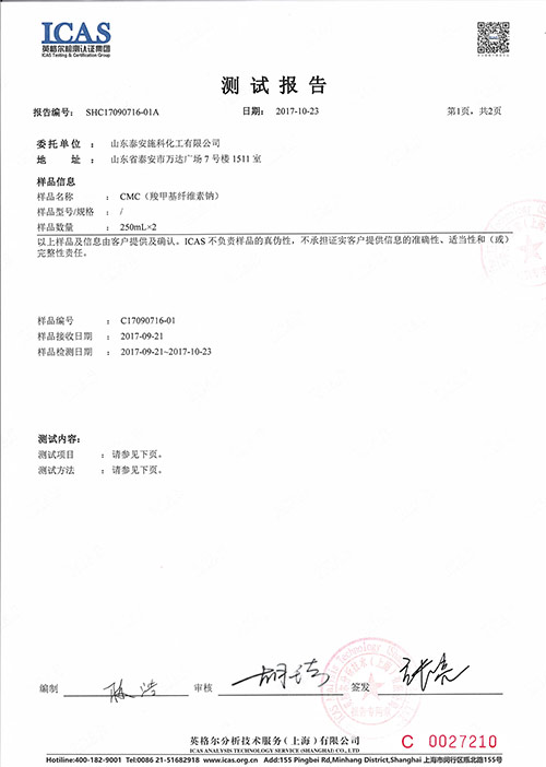 CMC-酸鉀基纖維素鈉檢測報告