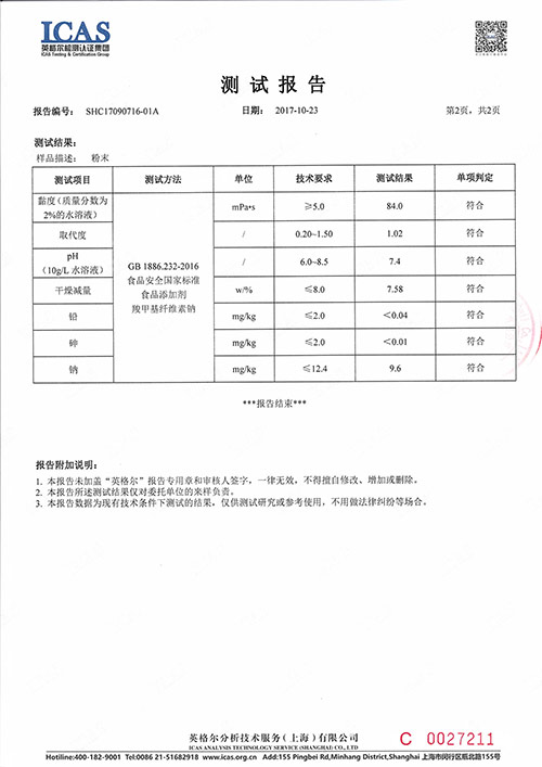 黏度 (質(zhì)量分數(shù)為2%的水濃度)檢測報告