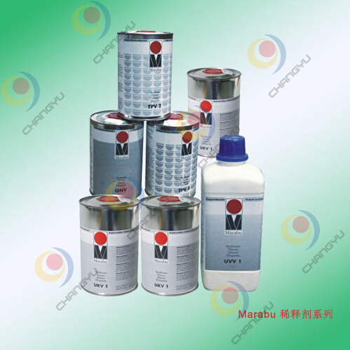 在油墨中加入稀釋劑會影響其粘性,流動性,網(wǎng)孔,干固速度,封網(wǎng)性,粘結(jié)劑的溶解性及消溶性,并且很大程度的影響附著力。根據(jù)不同油墨的特性,瑪萊寶有13種不同的稀釋劑可供選擇:有UKV1,UVK2,QNV,UR3,TPV,TPV2,TPV3厖.,其中UKV1最為常用。